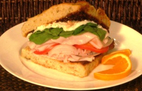 This sandwich is topped with fresh ricotta, aragula and balsamic dressing. Our turkey breast contains 50% less sodium than USDA data for Turkey Breast Meat. Additional Lower-Sodium Turkey Breast product codes are available.